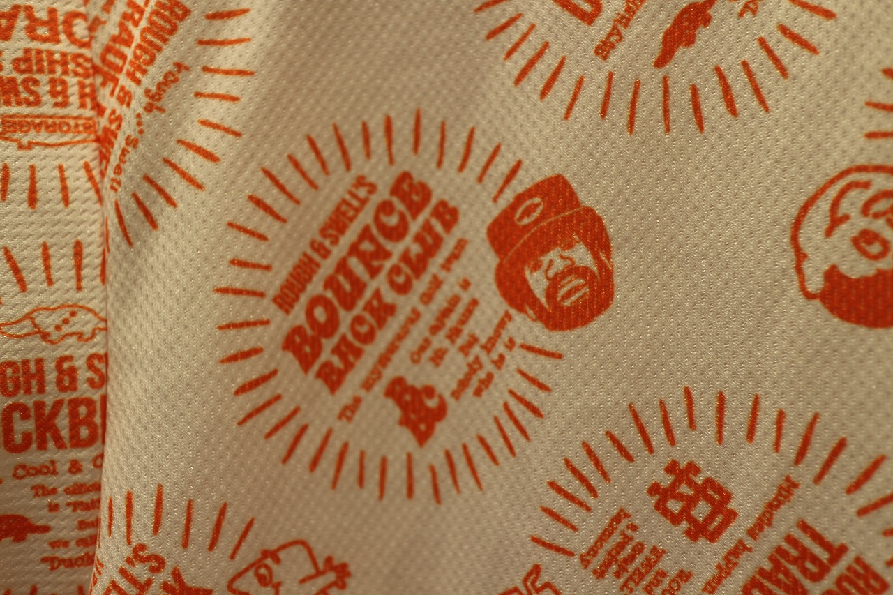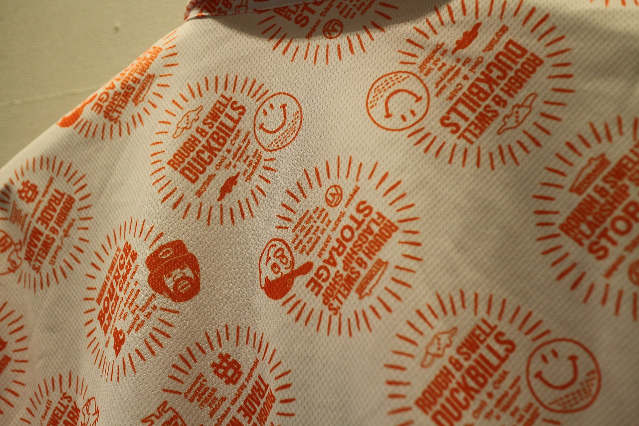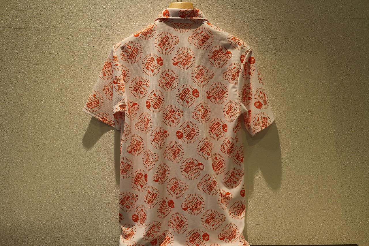 おなじみのキャストが総柄プリントされた 「CAST POLO」 吸水速乾と収縮性を備えたポリエステル・ダブルメッシュ素材