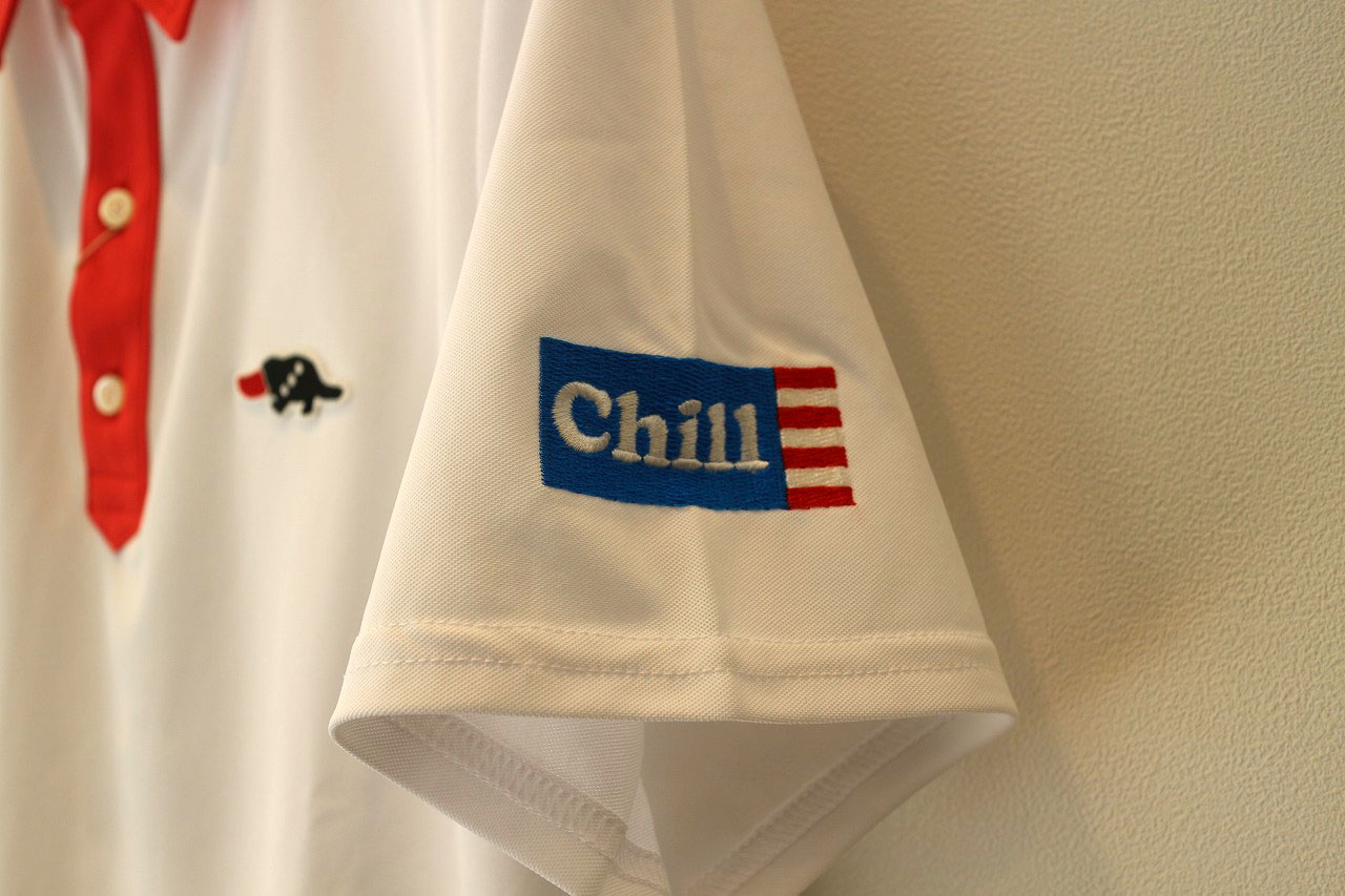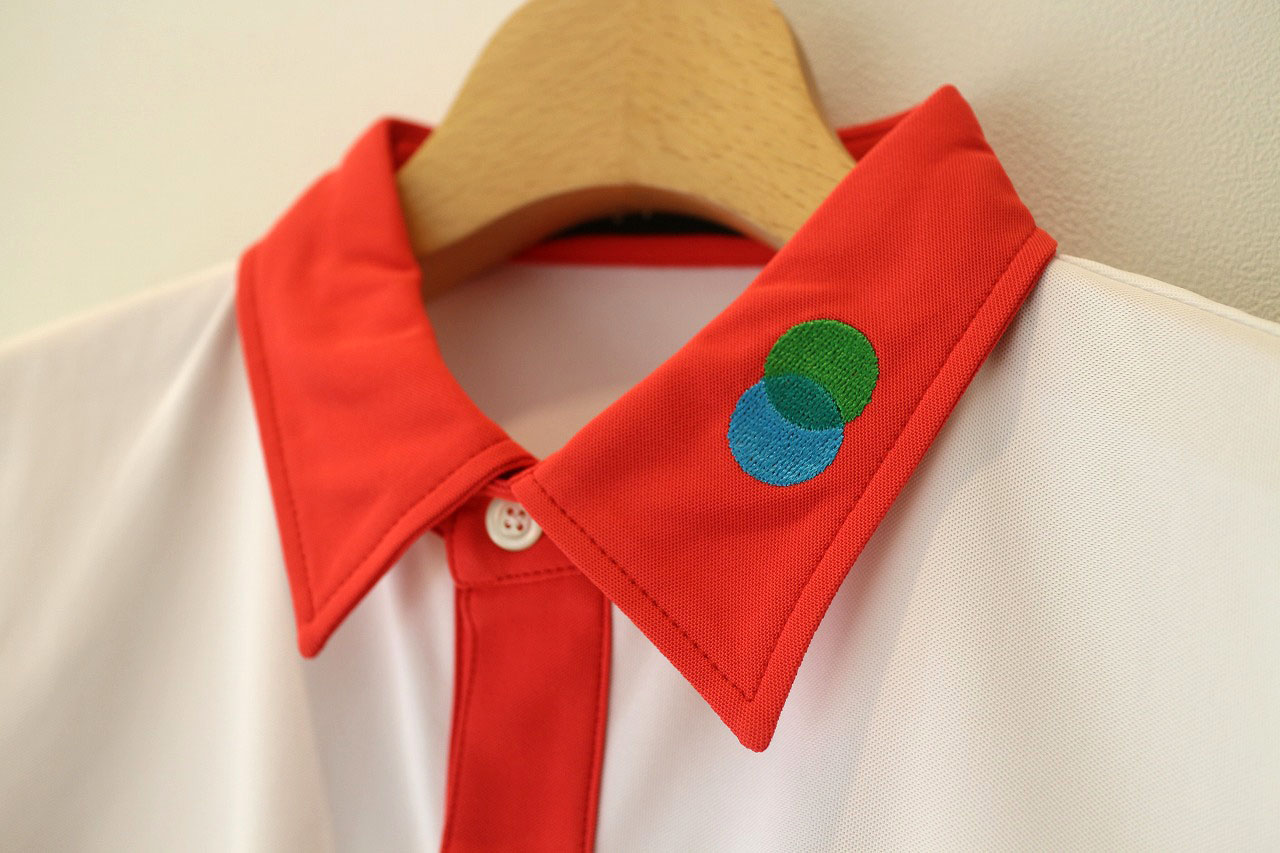 吸水速乾・ストレッチ・UVカットに優れたマイクロ鹿の子素材を使用 レギュラーカラーとカレッジフォントの組み合わせで、スポーティーに仕上げ