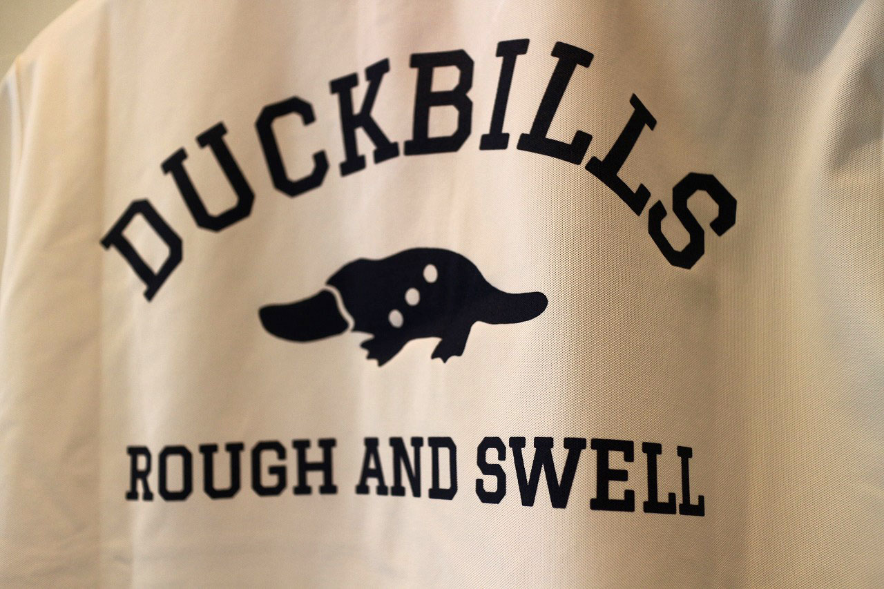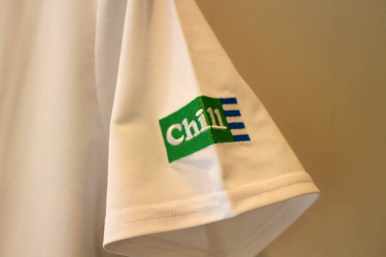レギュラーカラーとカレッジフォントの組み合わせで、スポーティーに仕上げ