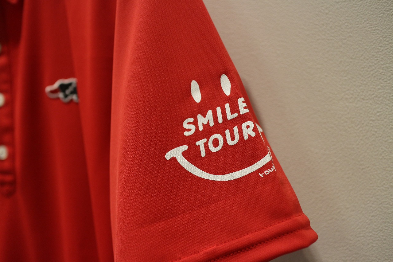 ハイスペックな素材に刺繍やプリントでロゴを配した 「SMILE TOUR POLO」 キュートなスマイルマークに 「SMILE EVERYTIME」